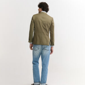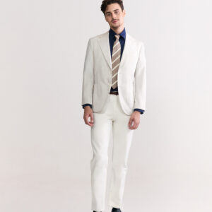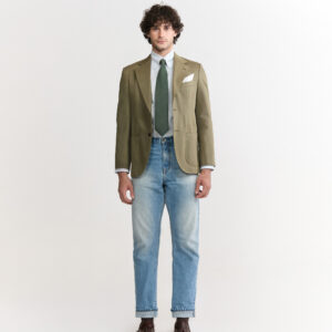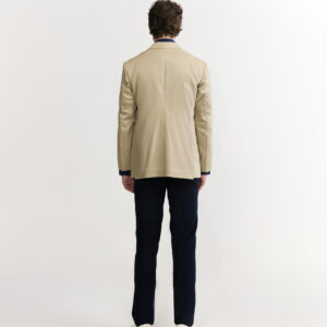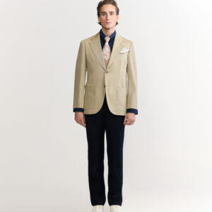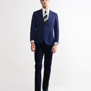English textile tradition meets relaxed sophistication in this Navy Blue meditation. Fox Brothers’ legendary cotton construction provides medium weight and superior drape while soft tailoring creates contemporary comfort. Peak lapel detailing, patch pockets, and two-button construction honor tradition while unlined construction embraces modern sensibilities. For men who understand that true authority needs no reinforcement