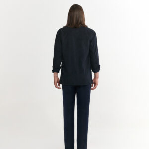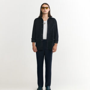 Vegan luxury that feels like rebellion refined. This ultra suede construction delivers leather’s visual impact with ethical conscience and superior care simplicity. The boxy fit creates clean architectural lines while straight collar and hem maintain dignified proportions. Pad pockets add functional poetry to this piece that flows between casual confidence and sophisticated statement-making with effortless grace