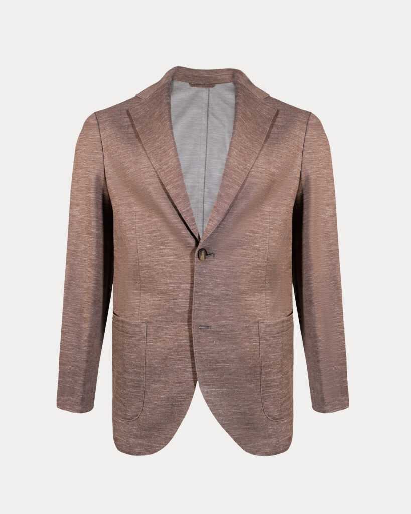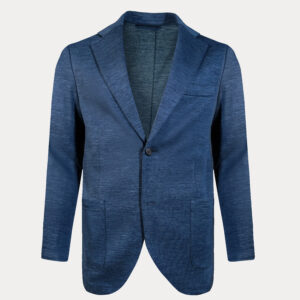 Revolutionary knitted wool jersey construction redefines summer tailoring. This deconstructed blazer moves like athletic wear while maintaining executive presence. Italian ultra-luxury fabric breathes with unprecedented comfort while natural material composition—wool, silk, linen—ensures climate adaptability. The unstructured silhouette liberates movement without sacrificing sophistication. Perfect for leaders who refuse to choose between performance and prestige.