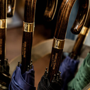 The Galahad Umbrella, an epitome of Zigma’s Lone Wolf collection, is meticulously crafted by skilled Italian artisans to uphold the highest standards of quality. Its robust 63-centimeter steel ribs provide a sturdy frame, while the ash wood and brass handle and ferrule exude timeless elegance.